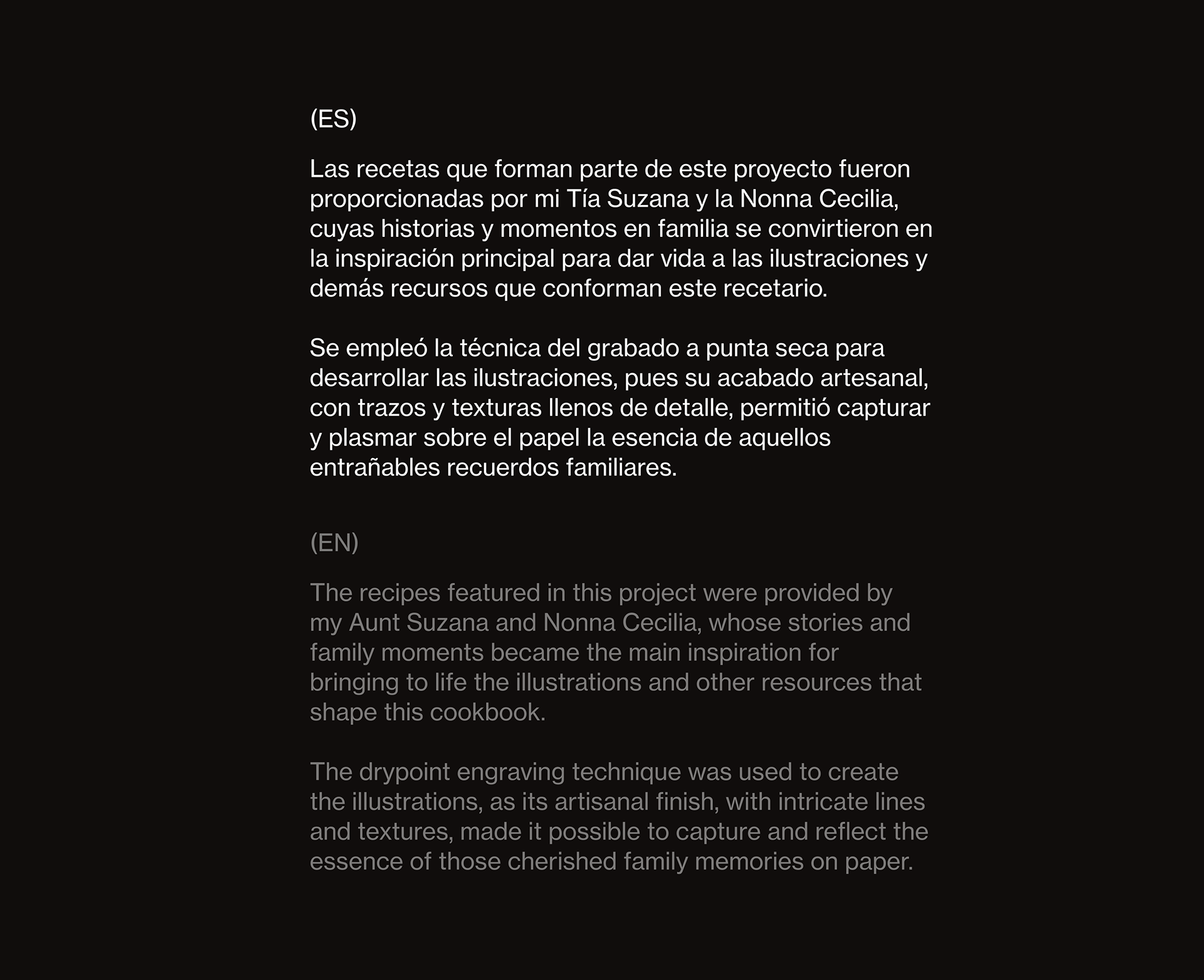 Todos los recursos utilizados en este proyecto, desde los textos hasta las ilustraciones y el diseño editorial, han sido realizados por mí como parte de mi Proyecto Final de Grado. Este trabajo representa no solo un homenaje a mis raíces, sino también una expresión de mi amor por el arte, la gastronomía y el diseño.